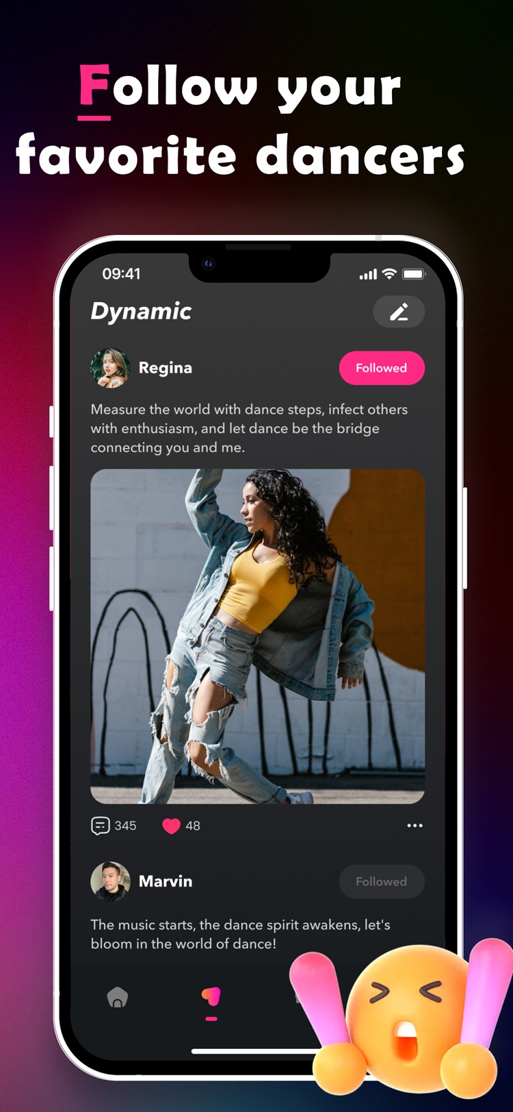 Share your dance journey by posting updates and connecting with a vibrant community.